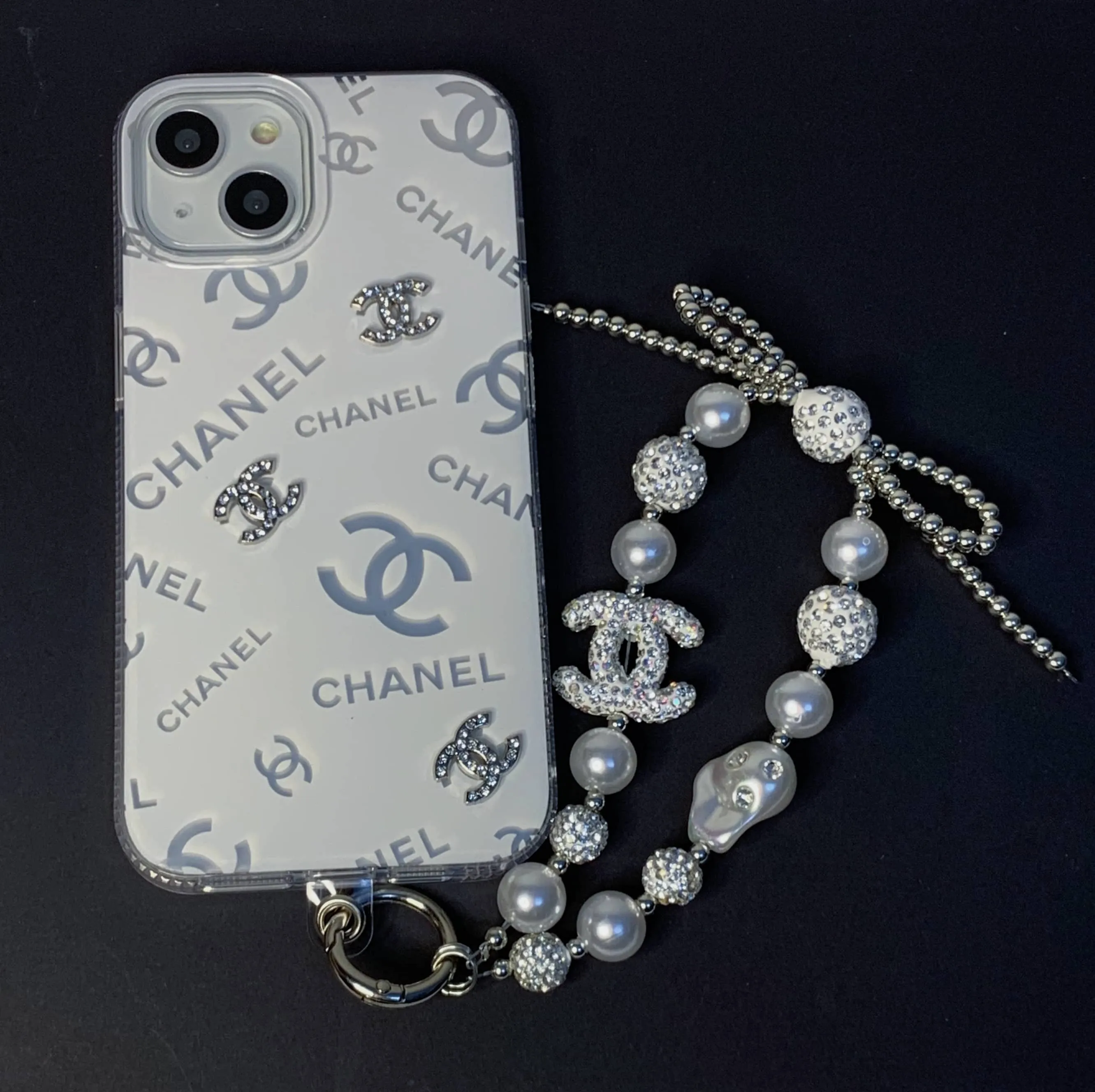 iPhoneケース スマホカバー iPhoneカバー ストラップ付き シンプル パールストラップ スマホケース