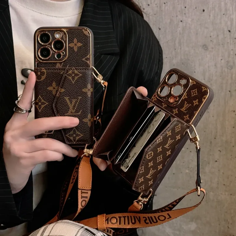 スタイリッシュ多機能 ストラップ付き高級レザー iPhone ウォレット ケース