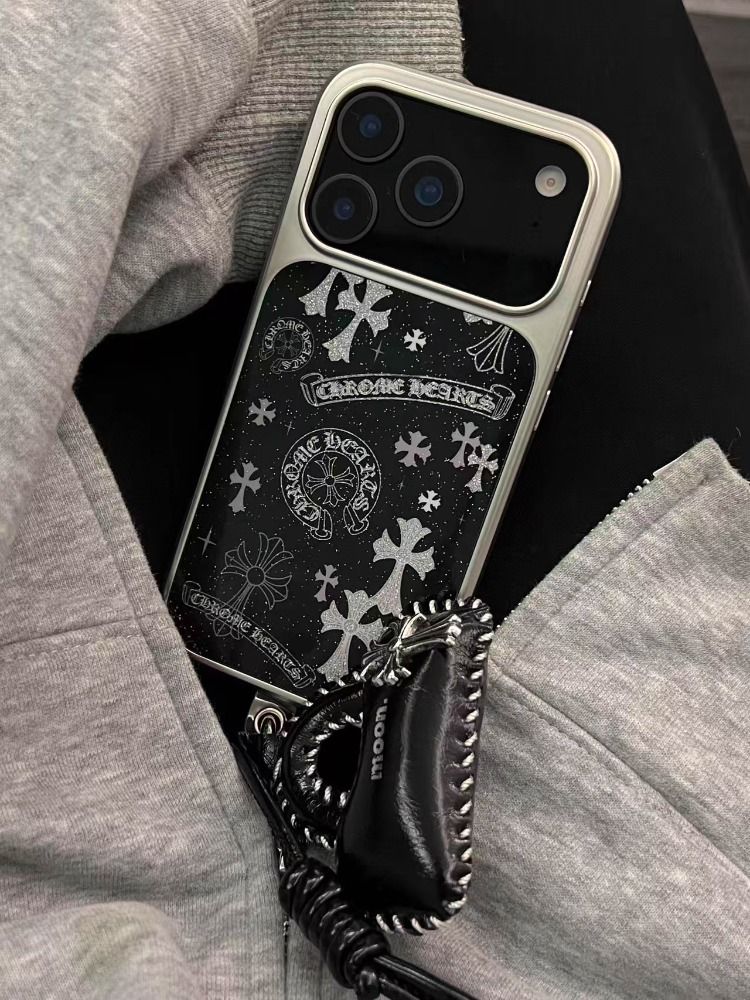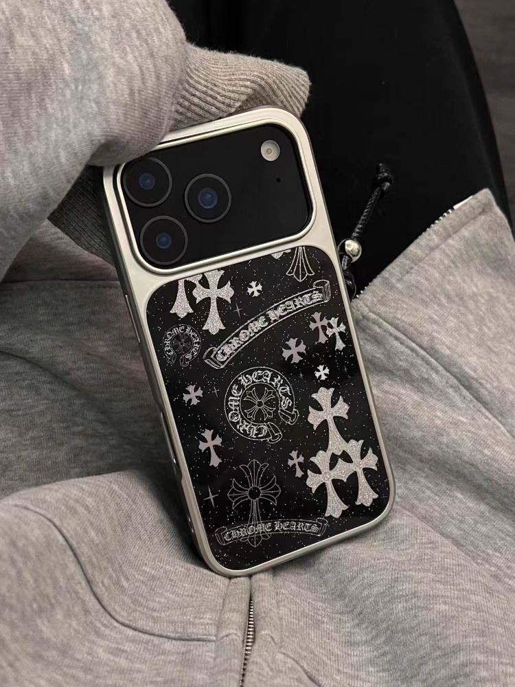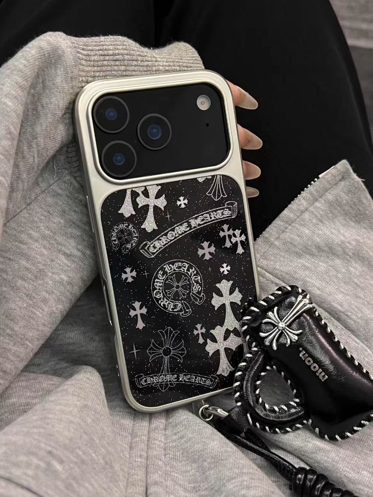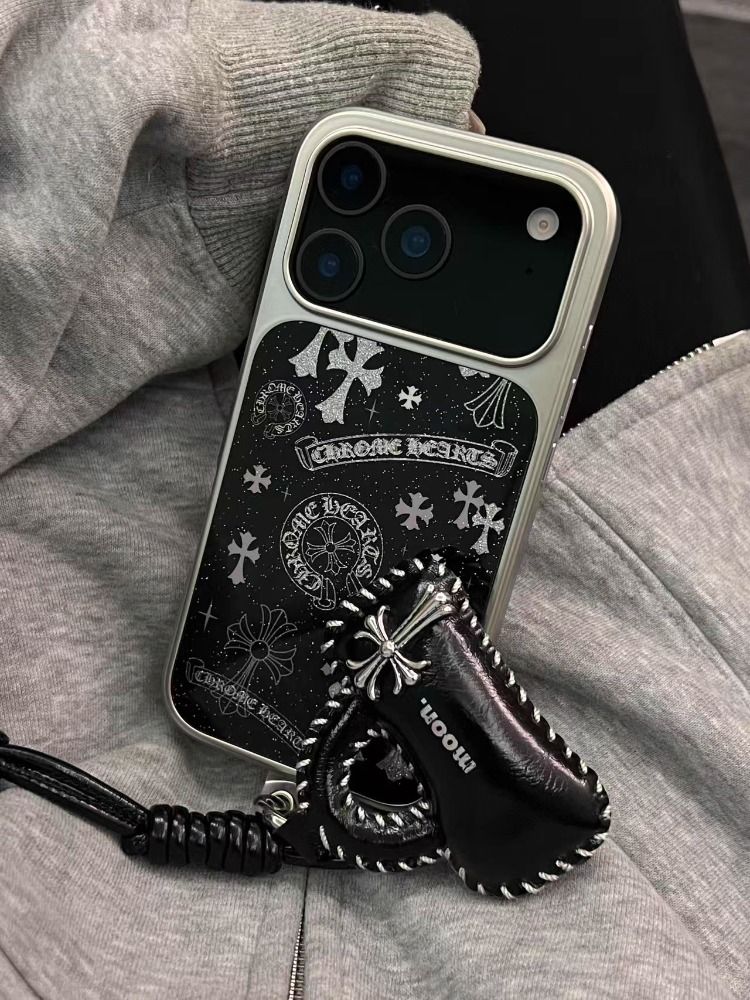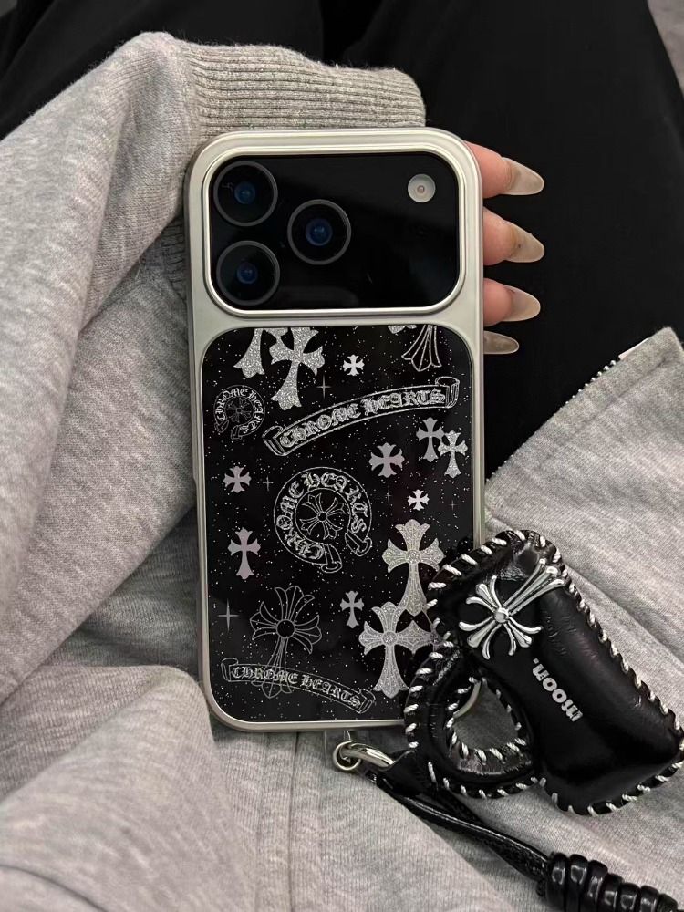 Appleデバイス用の人気のキラキラ輝く黒い十字形の携帯ケース