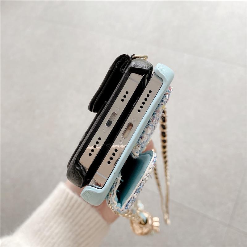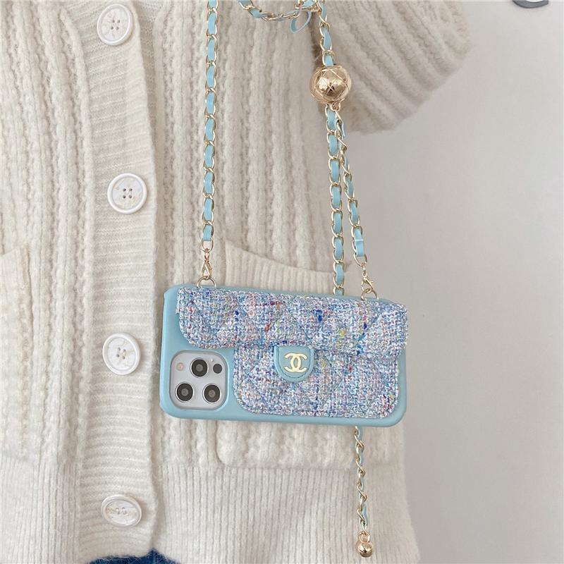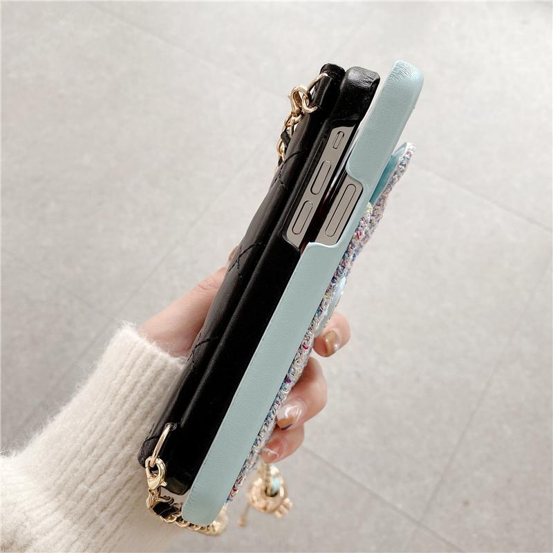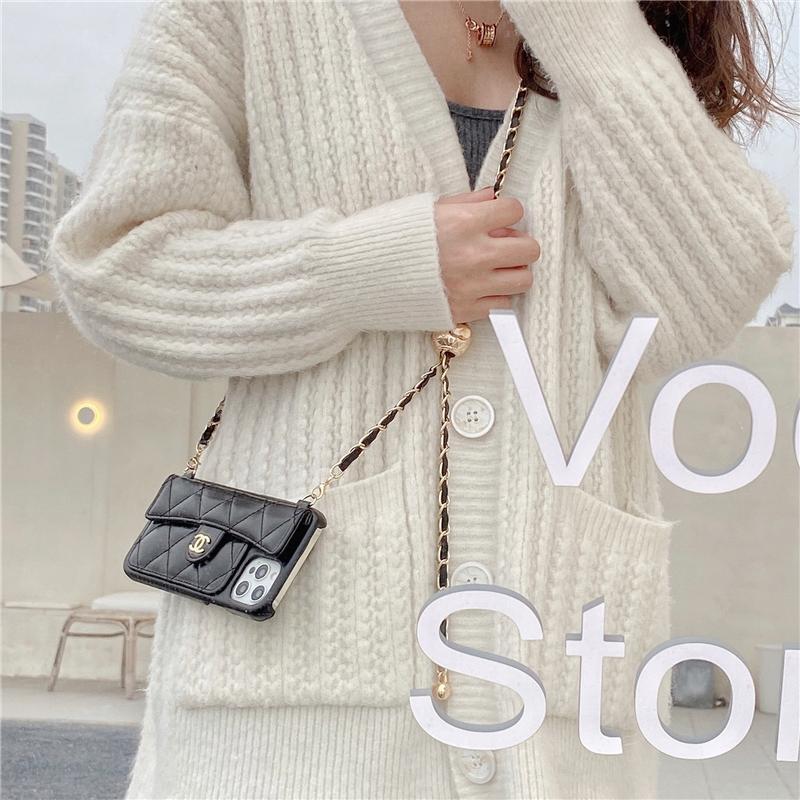 【ヨーロッパとアメリカの高級ブランドのプレミアムiPhoneケース】高品質のラムスキンチェーン斜め電話ケース