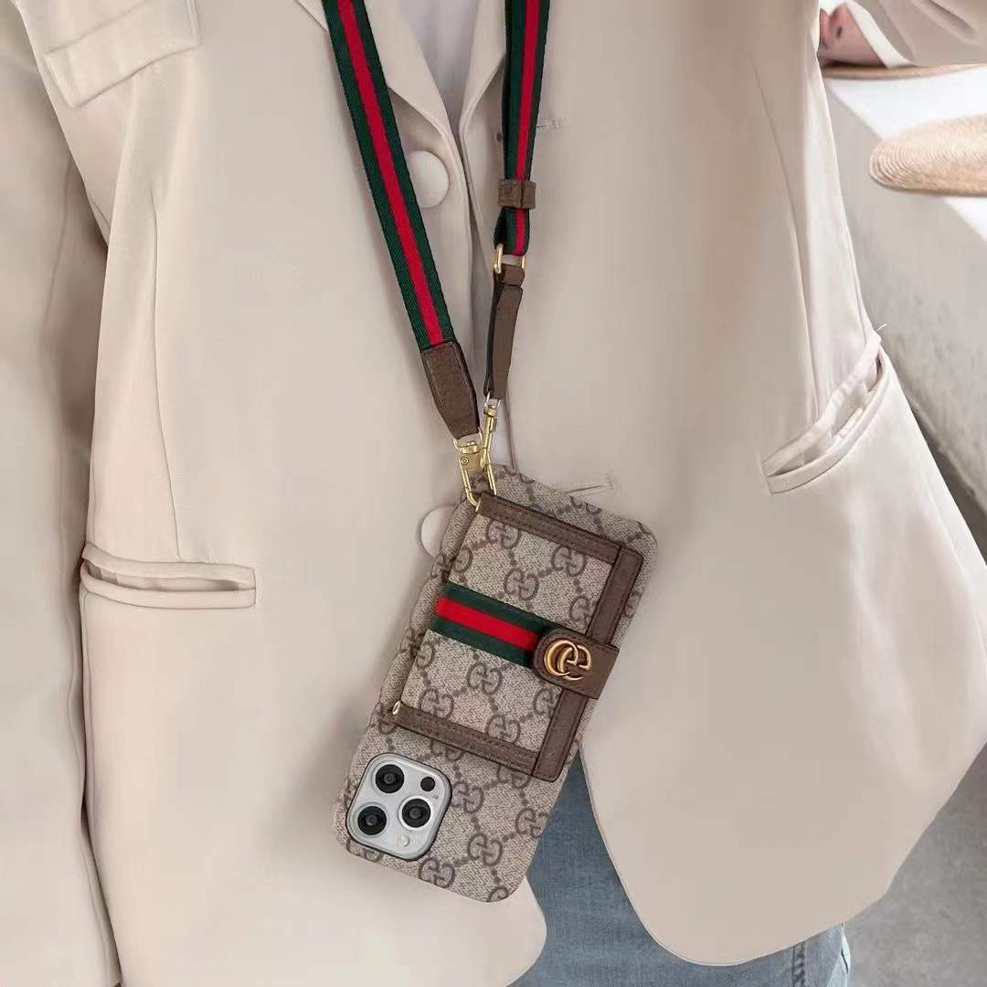 【NEW】ヨーロッパとアメリカの人気の携帯電話シェルカードバッグカードバッグ斜め吊り首防汚アンチフォールアップルiPhoneは古い花のストライプをサポートしています