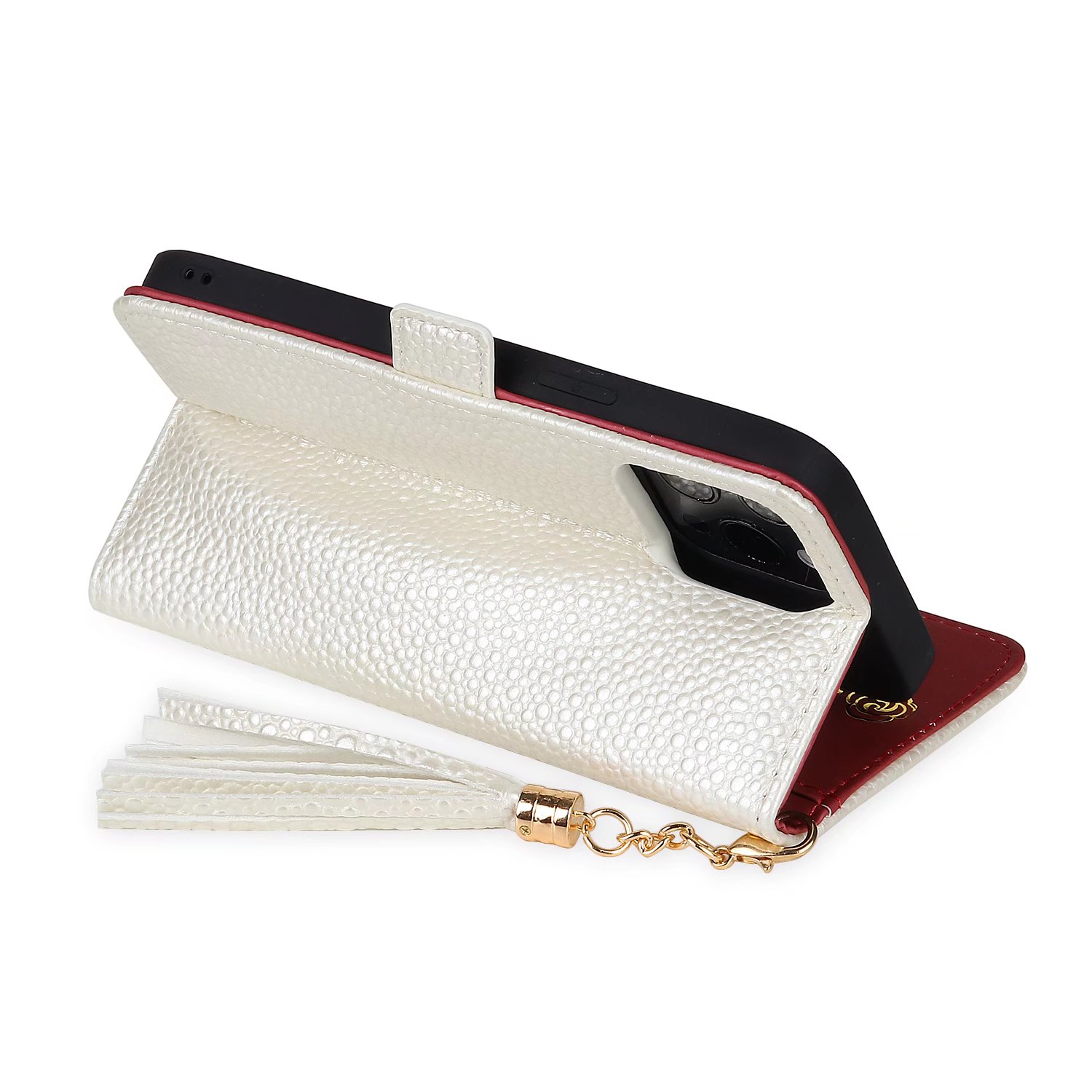 【限定新iPhoneケース発売中】パールパターンの折り畳み式携帯電話ケース